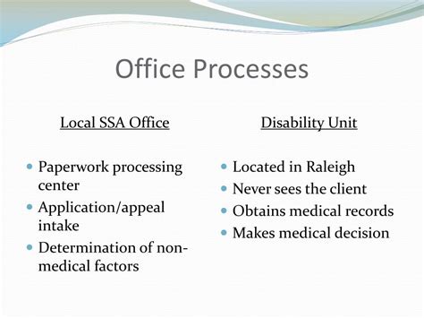 Alright, let’s get down to business and talk about what these SSA Disability Processing Centers actually do . Their primary mission is to process Social Security Disability Insurance (SSDI) and Supplemental Security Income (SSI) applications. This isn’t a simple task, guys. It involves a multi-step process, and the centers are the gatekeepers of that process. When you submit your application, it first lands at one of these centers. The claims representatives there are responsible for gathering all the necessary information. This means collecting your personal details, your work history, and crucially, your medical evidence. They’ll likely send you forms to fill out about your condition and might request medical records directly from your doctors. This evidence is the backbone of your claim, so making sure it’s complete and accurate is paramount. After the initial paperwork is collected, the claim is assigned to a claims examiner. This is where the real evaluation begins. The examiner reviews all the submitted medical records, testimony from you, and any other relevant information. They are looking to see if your medical condition is severe enough to prevent you from doing your past work or any other substantial gainful activity. This is a big hurdle, and it’s where many claims hit a snag if the evidence isn’t strong enough. What’s really interesting is that these centers also employ medical consultants – doctors and psychologists. These professionals review the medical evidence and provide their expert opinion on the severity of your condition and its impact on your functional abilities. They don’t make the final decision, but their input is vital for the claims examiner. The goal is to determine if your condition meets the SSA’s definition of disability, which is quite specific. It means you cannot engage in any substantial gainful activity by reason of any medically determinable physical or mental impairment(s) which can be expected to result in death or which has lasted or can be expected to last for a continuous period of not less than 12 months. So, they’re not just looking at whether you’re sick; they’re looking at whether your sickness prevents you from working in a significant way. Understanding these core functions is key, because it helps you know what kind of information you need to provide and what the people reviewing your claim are looking for. It’s all about building a solid case from the get-go!