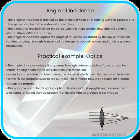 These are just a few examples. From the way a rainbow forms to the way a CD reflects light, the angle of incidence plays a vital role in our everyday lives. From the way a rainbow forms to the way a CD reflects light, the angle of incidence plays a vital role in our everyday lives. Knowing this angle helps in designing better technologies and understanding the world around us better.