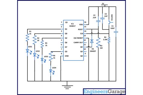 How it works: The 555 timer provides the clock pulses to the CD4017BE’s CLK pin. As the CD4017BE counts, it sequentially turns on the LEDs connected to its outputs. You can adjust the speed of the chase by changing the resistor and capacitor values in the 555 timer circuit. It’s super satisfying to watch!
