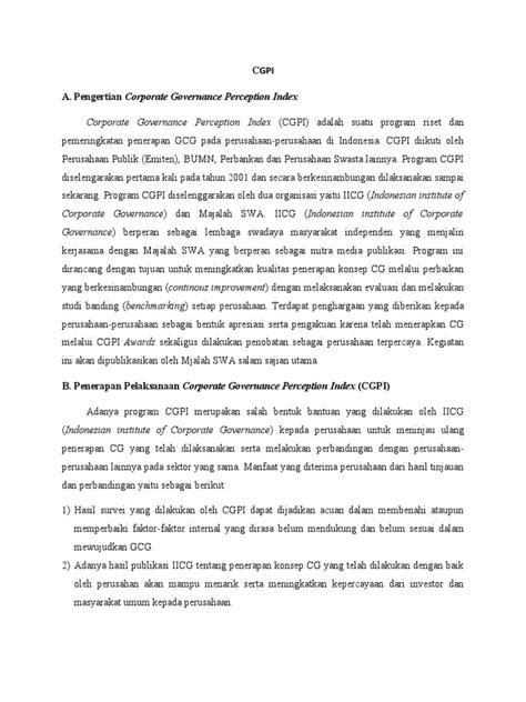 - Better Risk Management: A high CGPI score indicates that the company has a robust risk management framework in place. This helps the company to identify and mitigate risks more effectively, reducing the likelihood of financial losses and other negative outcomes.