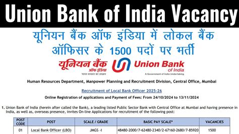 Union Bank Vacancy 2024: Notification PDF Download