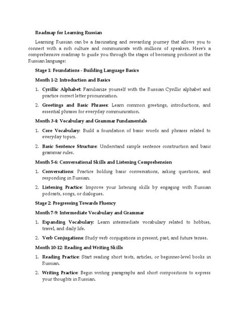 Okay, you’ve mastered the basics with BBC Learning Russian , but where do you go from here? It’s time to dive deeper and explore other resources to take your Russian skills to the next level. Consider enrolling in a formal Russian course. A structured course can provide you with a more comprehensive understanding of the language. Look for courses at your local community college, university, or online. Explore advanced grammar resources. Once you have a solid foundation, you can delve into more advanced grammar topics. There are many excellent textbooks and websites that cover Russian grammar in detail. Read Russian literature. Reading classic and contemporary Russian literature is a great way to improve your vocabulary and understanding of the culture. Start with shorter works and gradually move on to longer novels. Watch Russian films with increasing complexity. As your comprehension improves, challenge yourself with more complex films and TV shows. Pay attention to the dialogue and try to understand the nuances of the language. Engage in conversation with native speakers. This is one of the best ways to improve your fluency and confidence. Find opportunities to speak Russian with native speakers, either online or in person. Participate in online Russian language communities. There are many online forums and communities where you can connect with other Russian learners and native speakers. Share your experiences, ask questions, and practice your language skills. Immerse yourself in Russian culture. Attend Russian cultural events, visit Russian museums, and learn about Russian history. The more you immerse yourself in the culture, the better you’ll understand the language. Set challenging goals for yourself. For example, you could aim to read a Russian novel, watch a Russian film without subtitles, or give a presentation in Russian. Achieving these goals will give you a sense of accomplishment and motivate you to continue learning. Never stop learning. Language learning is a lifelong journey. There’s always something new to learn. Stay curious, keep practicing, and enjoy the process!