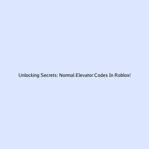 Unlocking Secrets: Normal Elevator Codes in Roblox!