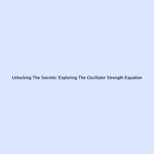 Unlocking The Secrets: Exploring The Oscillator Strength Equation