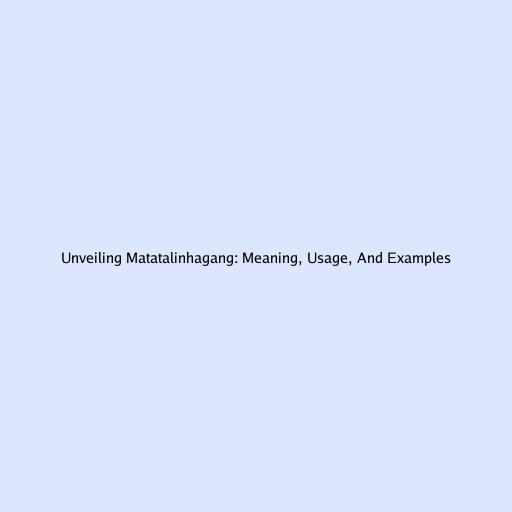 Unveiling Matatalinhagang: Meaning, Usage, and Examples